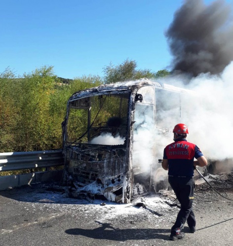 Edinilen bilgiye göre, Söke’den Kuşadası istikametine seyir halinde olan özel bir firmaya ait tur otobüsünde, çevre yolu Yaylaköy Mahallesi sınırları içerisinde yangın çıktı. Otobüs şoförü dumanları fark ederek, otobüsü yol kenarında durdurdu.