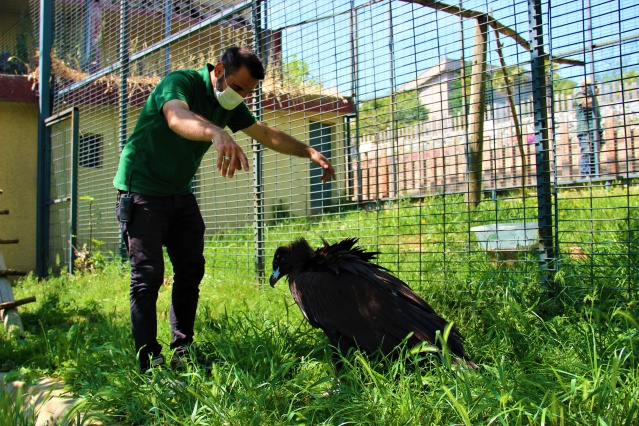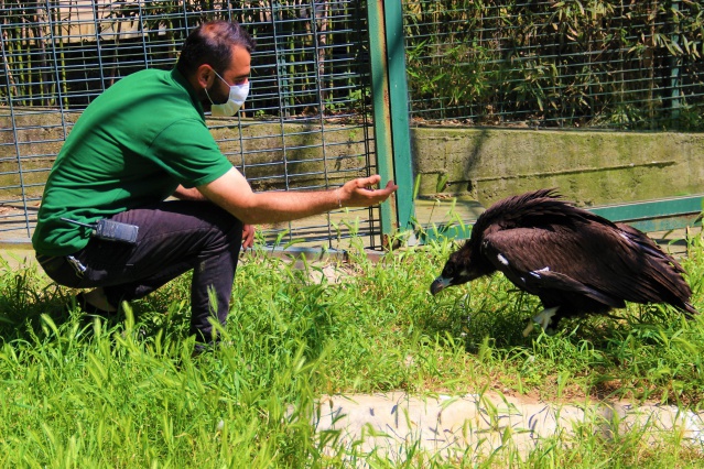 Bu türün neslinin ciddi anlamda tehdit altında olduğunu söyleyen Kaya, “Nesilleri ciddi tehdit altında. Bu kara akbaba bize doğadan geldi. Biz bunları normalde parklarda tutmuyoruz. Çünkü zaten tükenmek üzere olan bir hayvan. Bu genç bir birey, doğada bir kaza geçirmiş. Muhtemelen uçmayı yeni öğrendiği zamanlarda başına bir kaza gelmiş ve gözünün birini kaybetmişti.Ankara’ya götürülmüş ve Ankara’da Veteriner Fakültesi’nde tedavisi ve rehabilitasyon süreci tamamlandıktan sonra bizimle irtibata geçtiler. Biz gidip kendisini buraya getirdik. Bizim de burada belli bir rehabilitasyon sürecimiz oldu kendisini parkımızda bulunduğu barınağa adapte ettik ve şu anda burada bizimle beraber yaşıyor” diye konuştu.