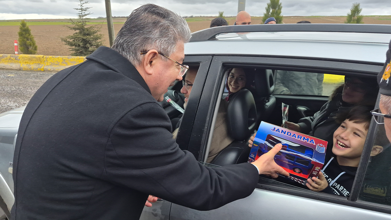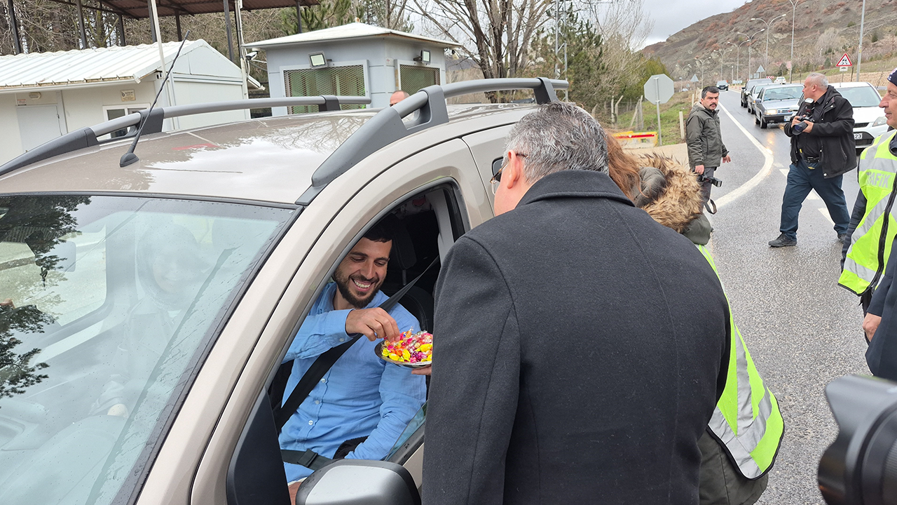 Uygulama noktalarında durdurulan araçlardaki sürücü ve yolcularla da bayramlaşan Vali Yılmaz, vatandaşlara çiçek, çocuklara ise oyuncak hediye etti.