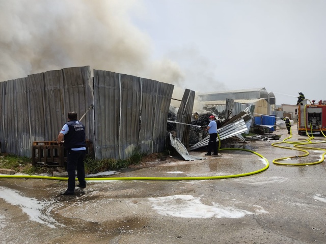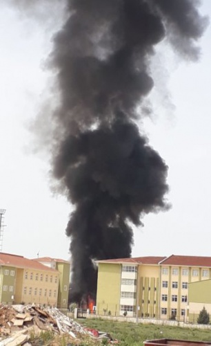 Edinilen bilgilere göre, EMKO sanayi sitesinde bulunan bir geri dönüşüm fabrikasının deposunda presleme yapıldığı esnada yangın çıktı. Kısa sürede deponun tamamına yayılan yangın, giderek büyüdü. Olay yerine gelen çok sayıda itfaiye ekibi yangına müdahale ederken, çevrede gerekli önlemler ekipler tarafından alındı. Fabrika ve depo çevresinde duvar olarak kullanılan demir saclar ise yangına daha iyi müdahale edebilmek için söküldü. Deponun dört bir yanından alevler kontrol altına almaya çalışılırken, itfaiye ekipleri yangının daha da büyümesini önledi.