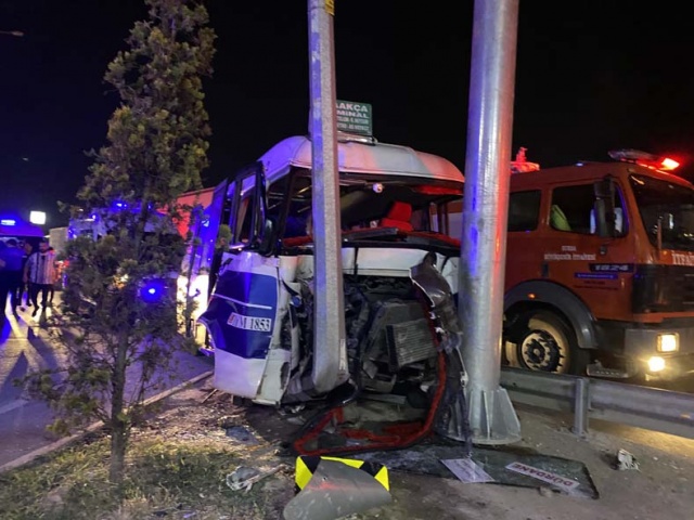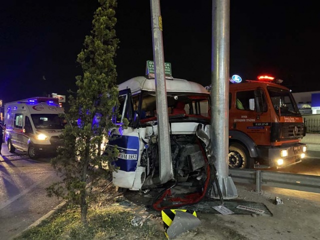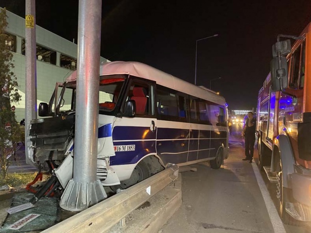 Bursa'da yolcu minibüsünün yön levhası direğine çarpması sonucu meydana gelen kazada 1'i ağır 12 kişi yaralandı.