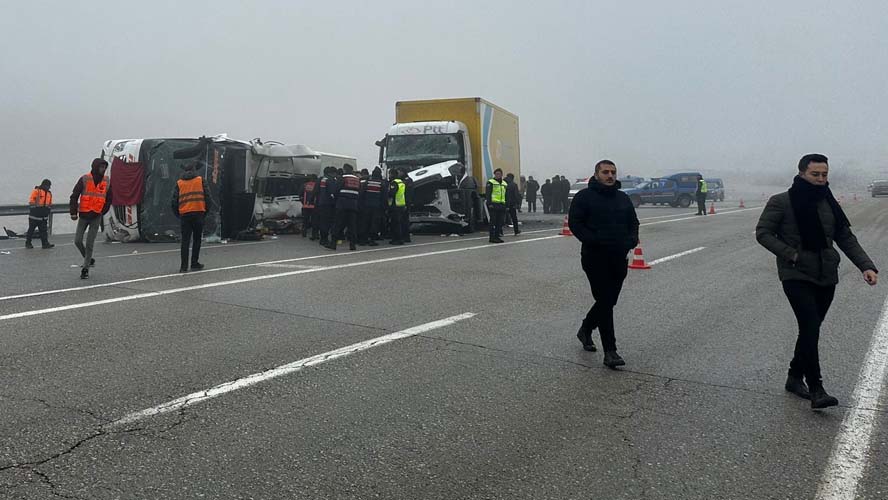 Kayseri'den Malatya'ya giden Y.K. kontrolündeki Medine Turizm'e ait 44 AK 041 plakalı yolcu otobüsü, aşırı buzlanma nedeniyle şoförün direksiyon hakimiyetini kaybetmesi sonucu devrildi. Yan yatan otobüse, arkadan gelen 06 CHL 767 plakalı PTT'ye ait kamyon çarptı.