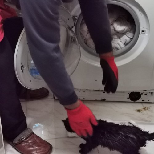 Eve gelen Borçka Belediyesi itfaiye ekipleri önce çamaşır makinesinin suyunu tahliye etti, daha sonrada kapağı açarak yavru kediyi kurtardı. Islanmış ve korkmuş halde çamaşır makinesinden çıkartılan yavru kedi, veteriner hekimin tedavisinin ardından sahibine teslim edildi.