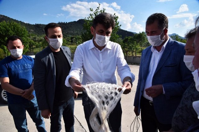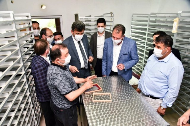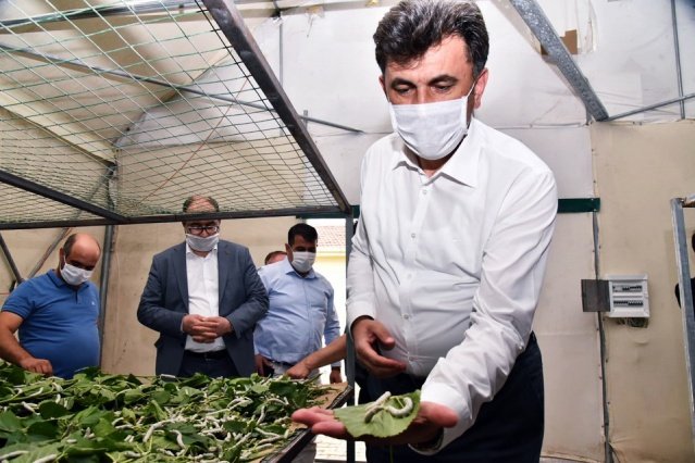 Zihni Çalışkan, Sarıcakaya'da organik ipek böceği üretilen tesisi de ziyaret etti.