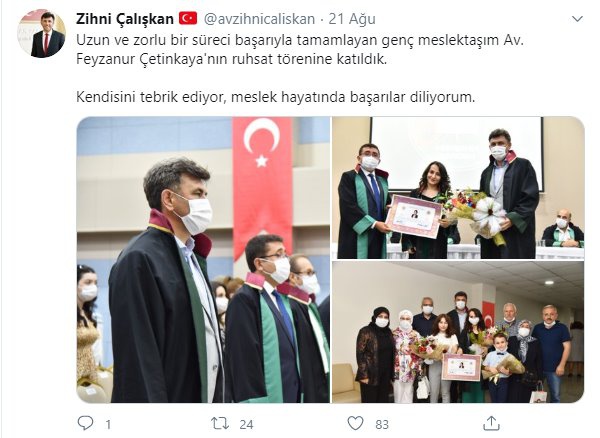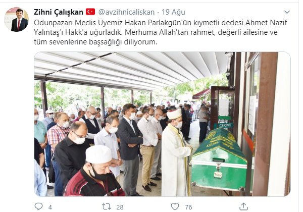 AK Parti Eskişehir İl Başkanı Zihni Çalışkan, 19 Ağustos'ta Odunpazarı Meclis Üyesi Hakan Parlakgün'ün dedesi Ahmet Nazif Yalıntaş’ın cenazesine de katılmıştı...