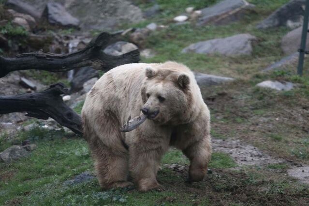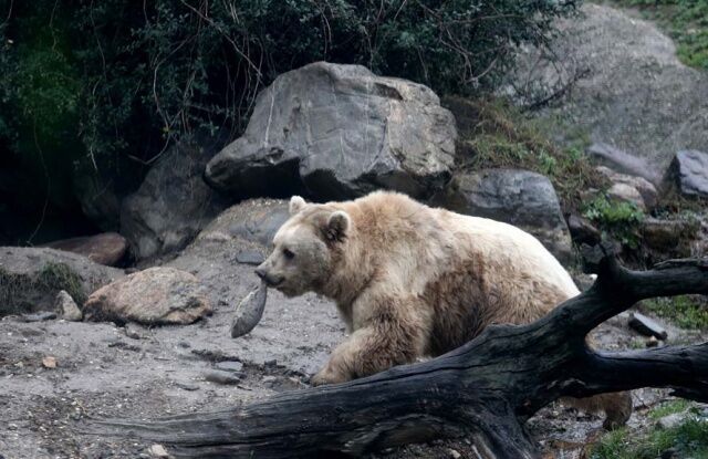 Ayıların da balık avı, aynı kaplan gibi saniyeler sürdü. Bakıcılarının toprak altına gizlediği balıkların kokusunu alan ayılar, elleriyle koymuş gibi balıkların yerini buldu. Toprağı hızla pençeleriyle kazan ayılar, balığın ortaya çıkmasıyla birbirine tepki gösterdi. Daha sonra diğer balıkları da bulan ayılar, bir köşeye çekilerek avlarını keyifle yedi.