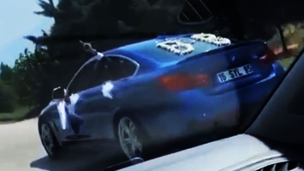 Olay, merkez Osmangazi ilçesi Yakın Çevre Yolu'nda meydana geldi. Edinilen bilgiye göre, düğün konvoyundaki gelin arabasında bulunan kişi, sınırları aşarak seyir halindeki gelin arabasının camından çıkardığı tabanca ile yaklaşık 15 el ateş açtı. O anlar trafikteki başka bir sürücünün cep telefon kamerasına yansıdı.