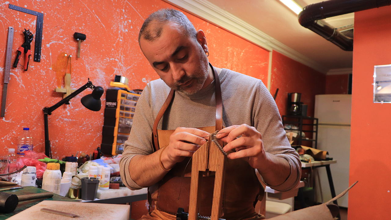 40 yaşındaki deri ustası Metin Taşkıran, yaklaşık 10 yıl önce hobi olarak başladığı deri işini, İstanbul’daki kurumsal hayatını geride bırakarak profesyonel bir kariyere dönüştürdü. Eskişehir’de kurduğu atölyesinde çanta, cüzdan ve saat kayışı gibi özgün ürünler üreten Taşkıran, üretimi bir iş yerinden çok huzur bulduğu bir alan olarak görüyor.