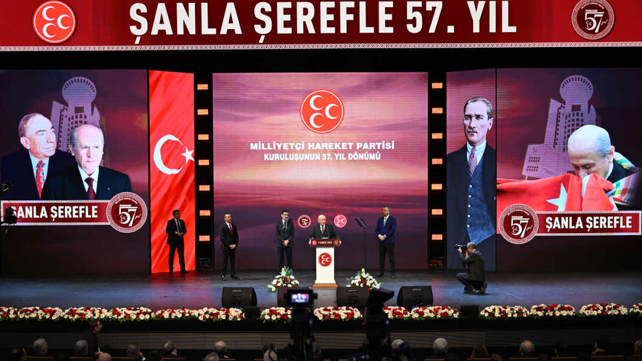 Milliyetçi Hareket Partisi (MHP) Genel Başkanı Devlet Bahçeli, partisinin kuruluşunun 57. yıl dönümü dolayısıyla Ankara ATO Congresium’da düzenlenen “Şanla Şerefle 57. Yıl” programına katıldı. Bahçeli, programda yaptığı konuşmada gündeme ilişkin değerlendirmelerde bulundu.