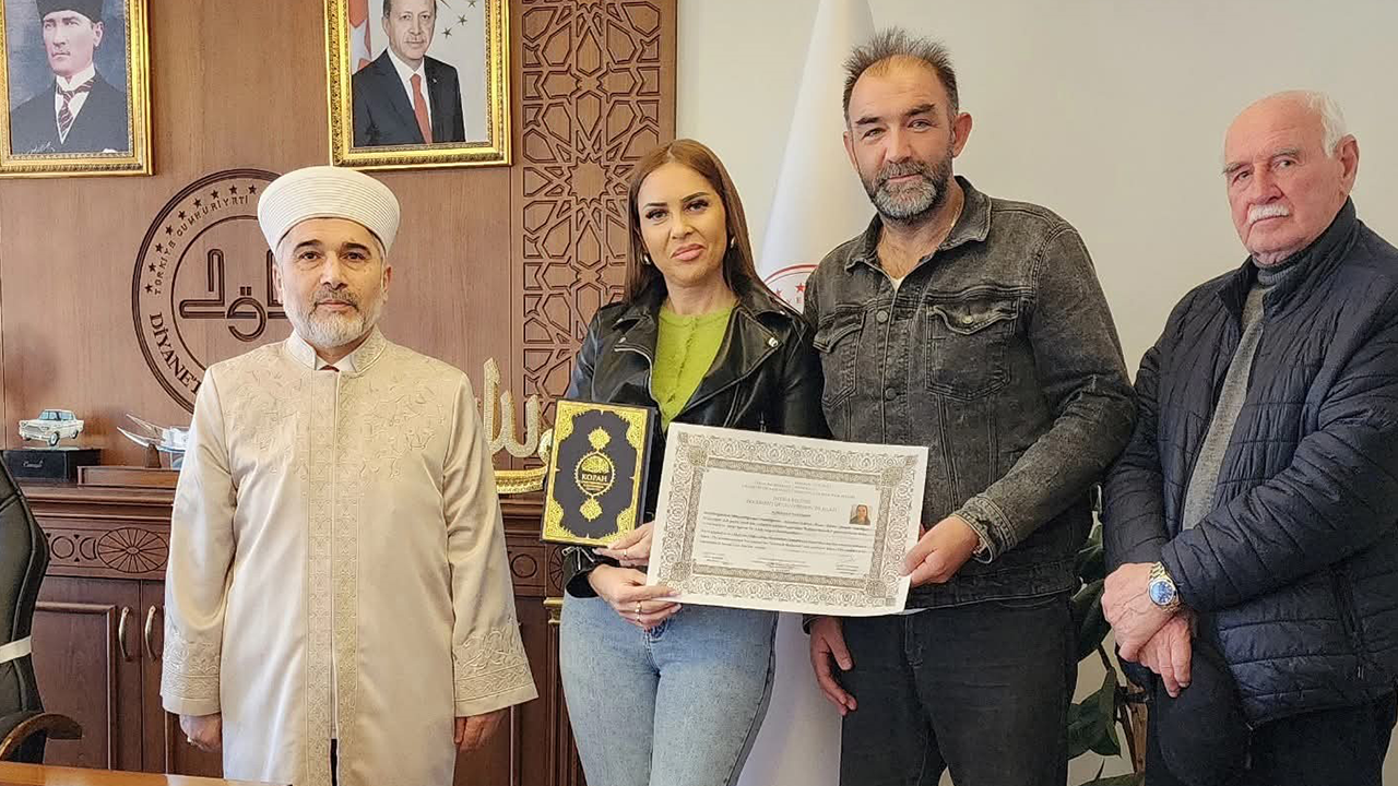 Programın sonunda İl Müftüsü Muharrem Gül tarafından Aleyna’ya ihtida belgesi takdim edildi. Ayrıca Rusça Kur’an-ı Kerim meali ve çeşitli dini yayınlar hediye edildi.