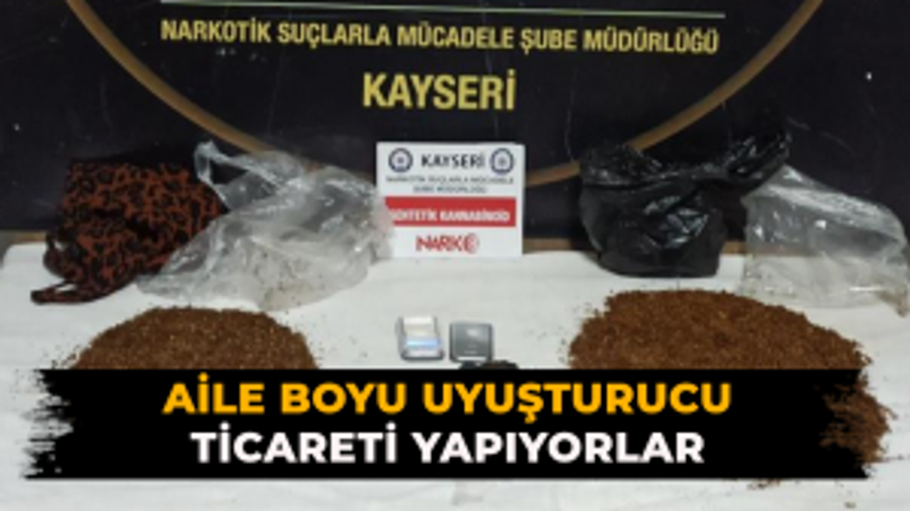 Kayseri'de polis ekipleri tarafından düzenlenen operasyonda anne, baba ve oğul uyuşturucu ticareti yaptıkları iddiasıyla gözaltına alındı.