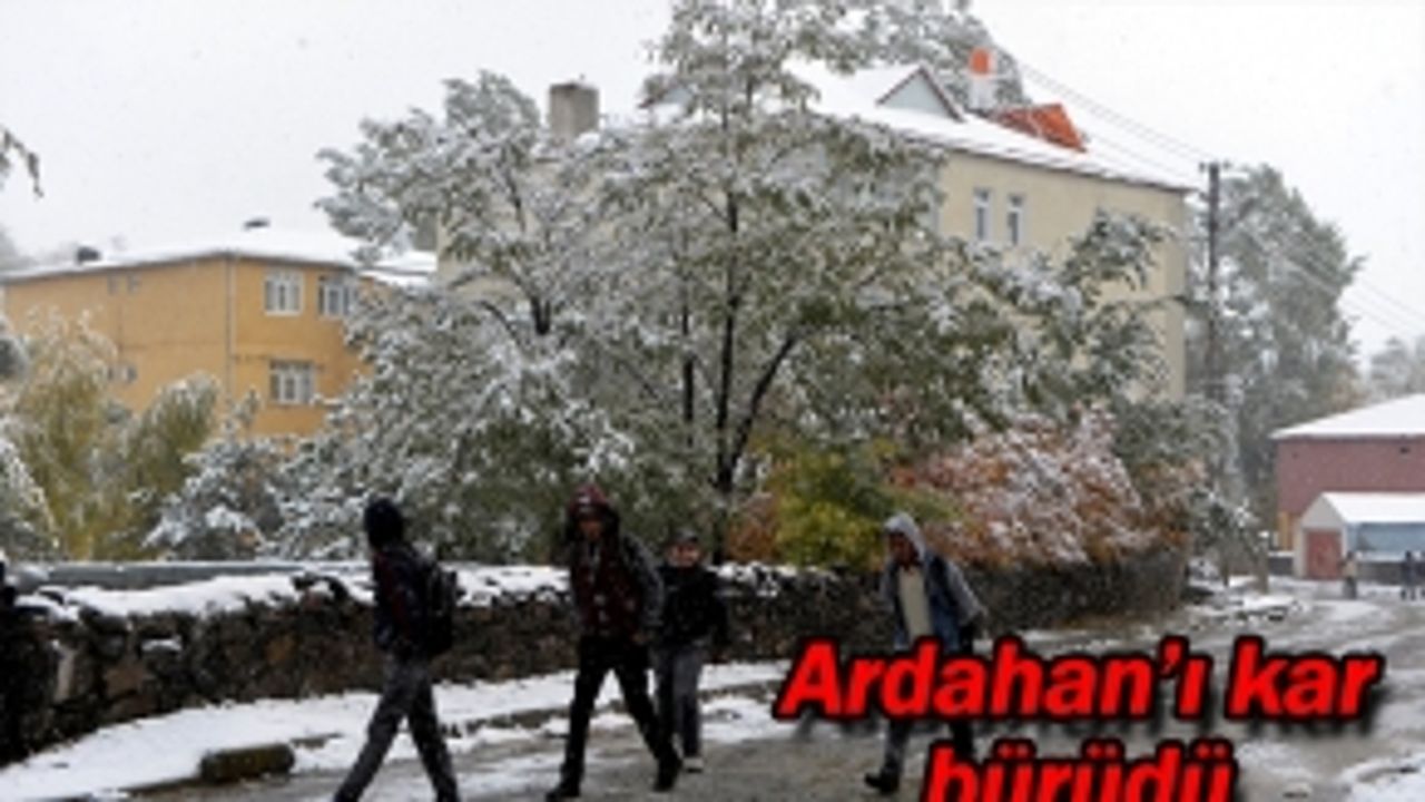 Ardahan, kent merkezine yağan karla beyaza büründü.