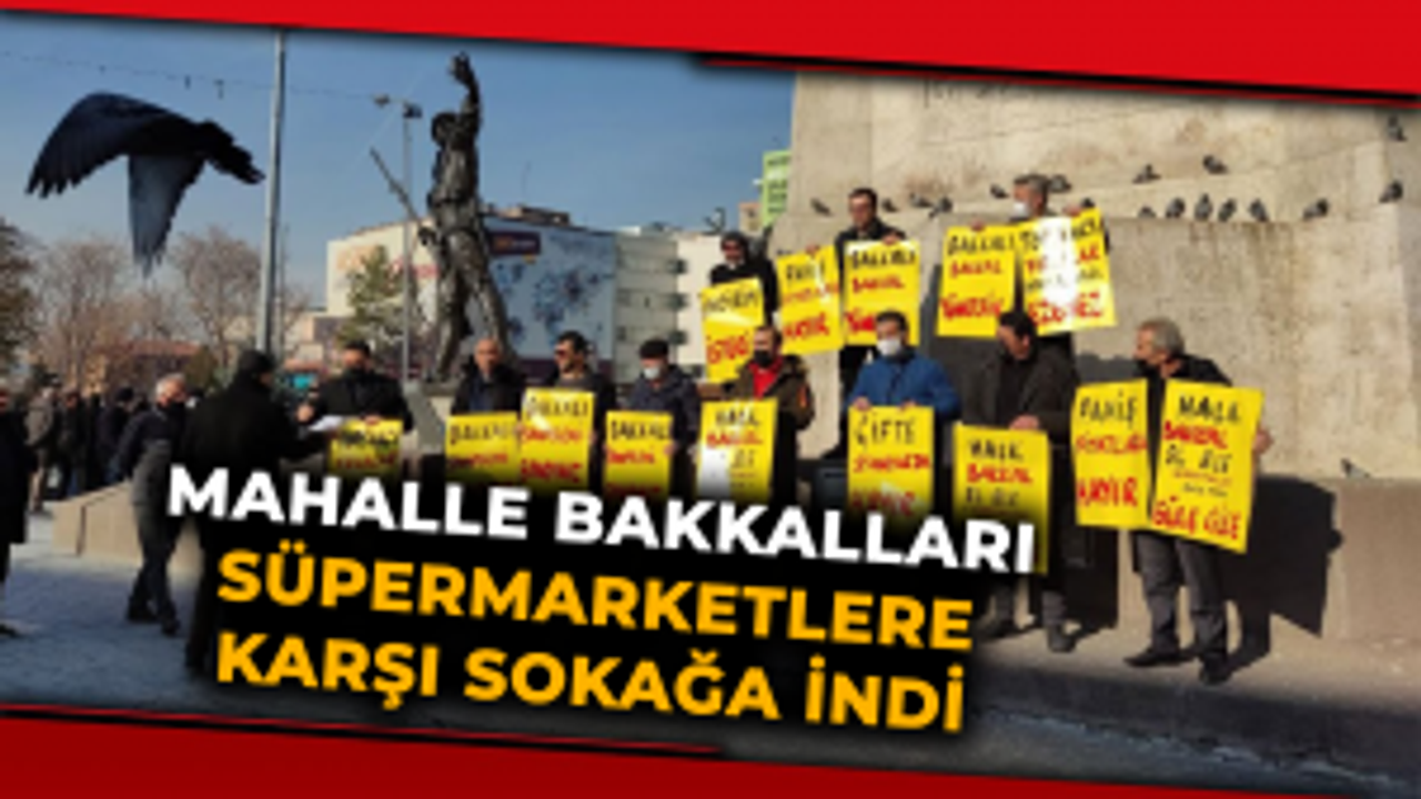 Ankara'da toplanan bakkallar, toptancı şirketlerinin zincir marketlere daha düşük fiyattan ürün satarak bakkalları 'fahiş fiyatçı' gibi göstermesini protesto etti.