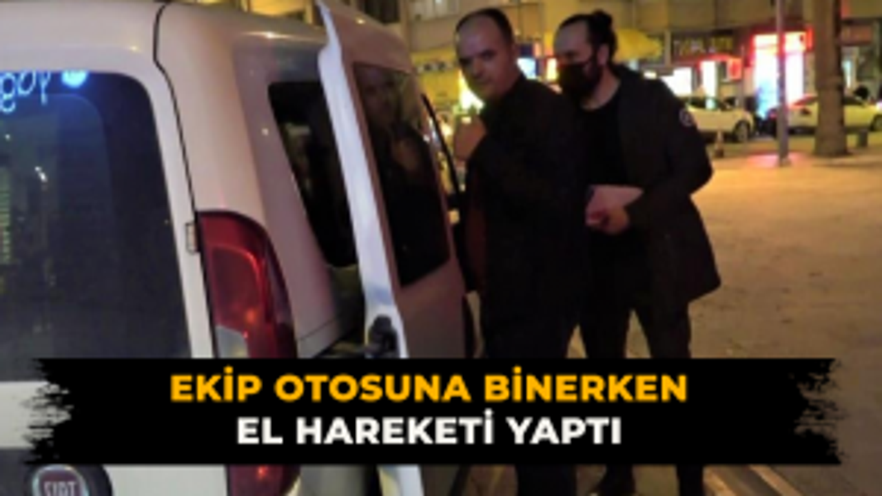 Ekip otosuna binerken gülerek el hareketi yaptı