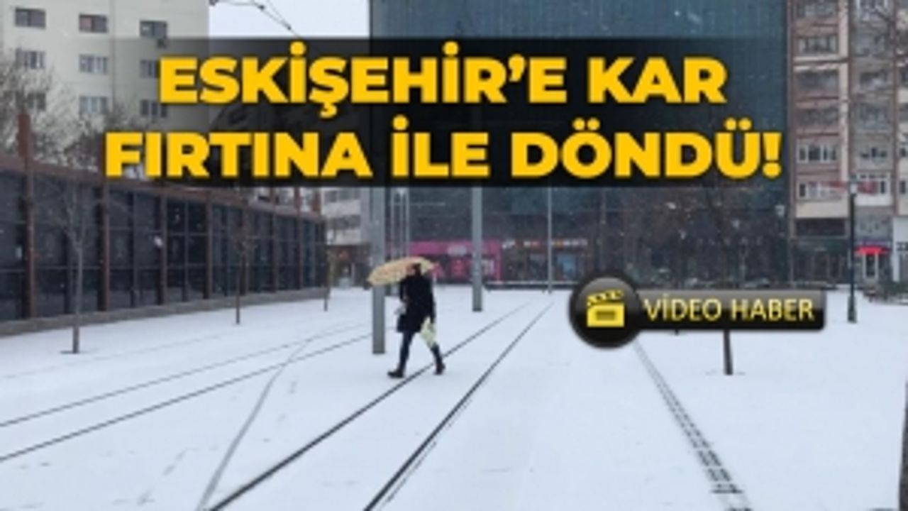 Eskişehir’de fırtına ile birlikte aniden başlayan şiddetli kar yağışıyla birlikte kent merkezi kısa süre içerisinde yeniden beyaza büründü.