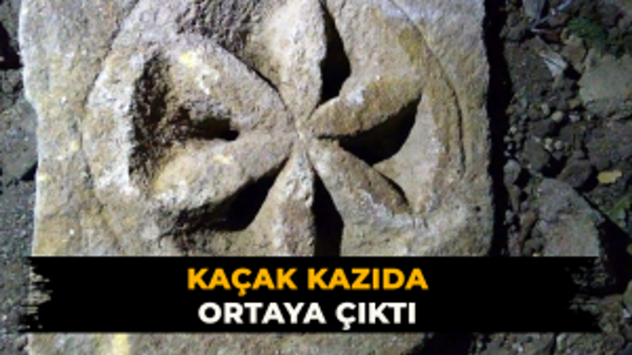 İlçenin Yeşilbük beldesi Kızlar Kalesi Göleti mevkiinde kaçak kazılar sonucunda ortaya çıkan yapı uzmanlar...