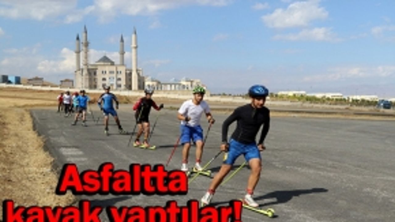 Muş Spor Lisesinin kayak takımının sporcuları, en büyük hedefleri olan milli takıma seçilmek için asfaltta antrenman yapıyor.