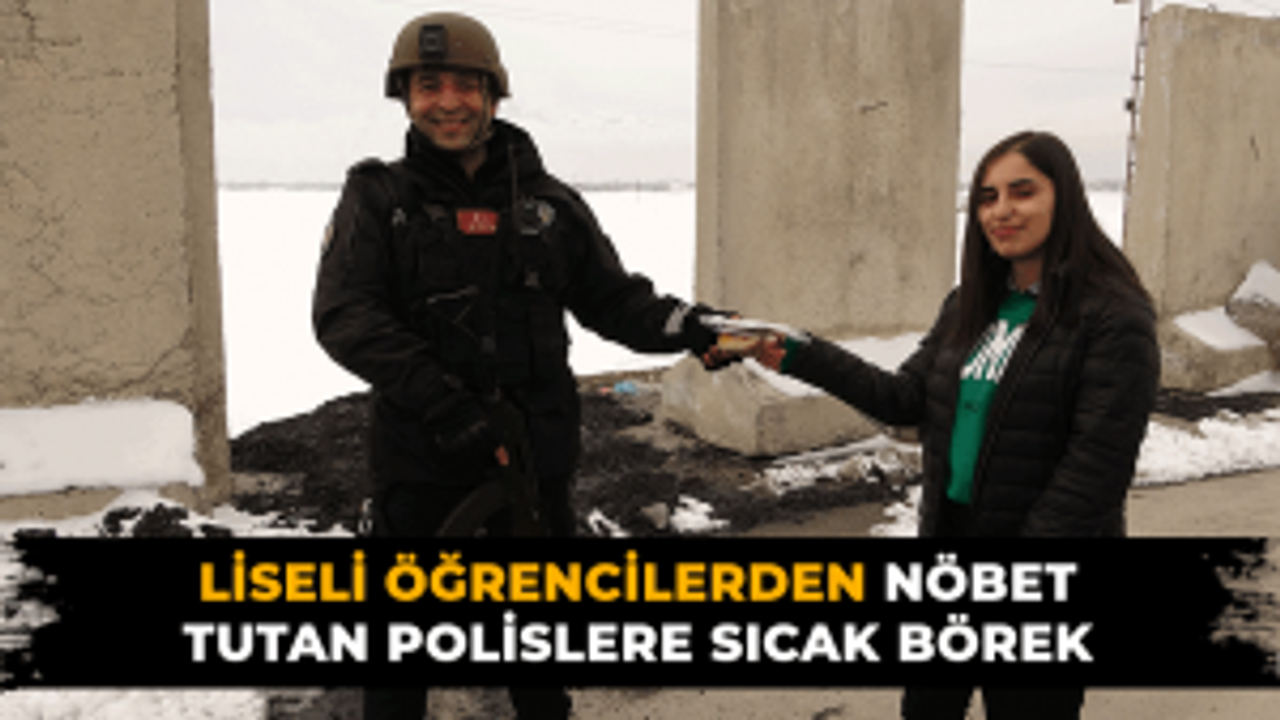 Öğrencilerden soğuk havada nöbet tutan güvenlik güçlerine sıcak börek