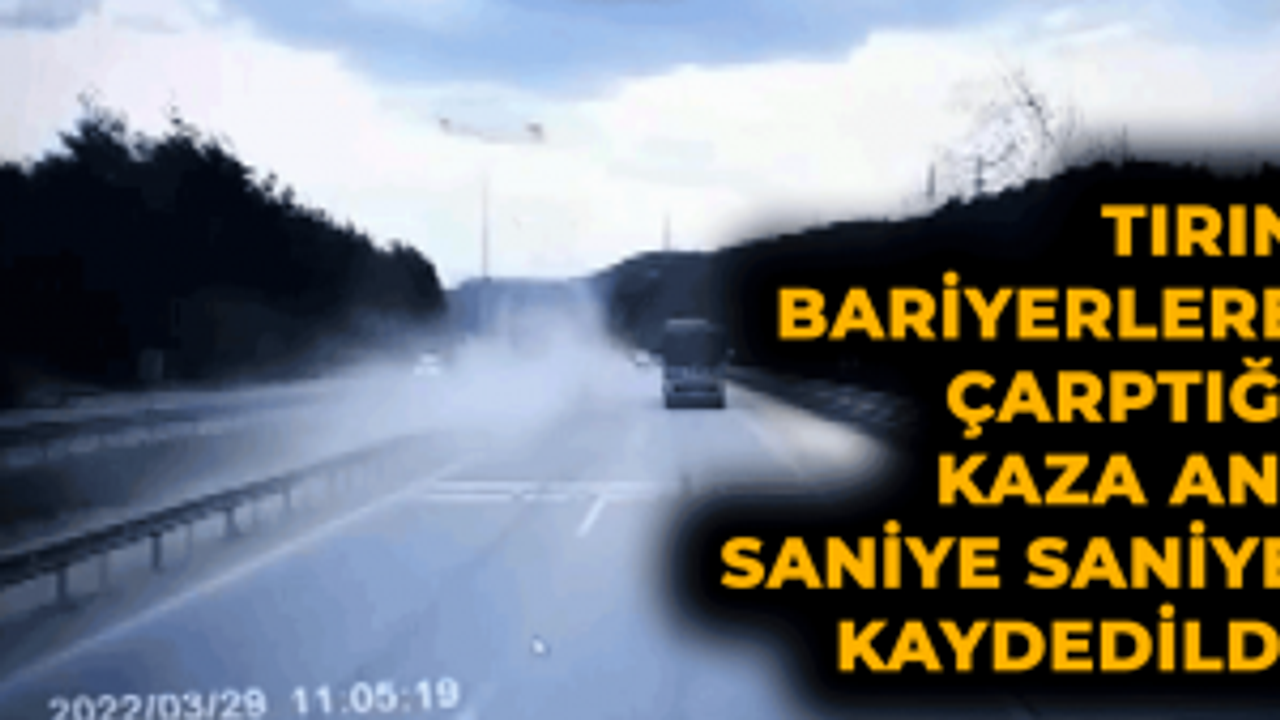 Bursa-İstanbul karayolunda kontrolden çıkan tırın bariyerlere çarparak tozu dumana kattığı anlar başka bir otomobilin kamerasına yansıdı. Kaza sonrası diğer araç sürücüleri zor anlar yaşadı.
